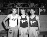 Left to right are: Charles Wylie, discus champion of North Side, Jerry Forrester, pole vault champion of city from Paschal, and Robert Crow, shot put and sprint relay champion of city.