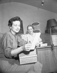 Mrs. Roger C. Neeley Jr. and Miss Marilyn Rine working on mailing list