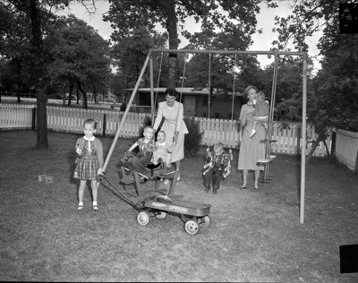 Children in picture Drew Jakucewicz, Christy Ann Willett, Burt and Curt Landtroop, Pamela Klar. Ladies in pictures are Mrs. Henry Jakucewicz and Mrs. Trey I. Willet