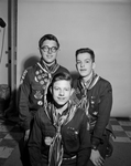 Eagle Scouts - Three Boy Scouts who recently were awarded Eagle Scout badges at a ceremony at the Knights of Columbus Hall, 904 Collier, are Bud Wilkinson, son of Mr. and Mrs. C. R. Wilkinson, 6701 Hanover Road; left rear, Joe Felix, son of Mrs. Joe Felix, 4829 Norma; front, and Russell Covitt, son of Mr. and Mrs. Ned Covitt, 2536 Walsh Ct., right.