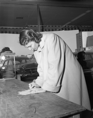 Mrs. Bob Oliver, casting her vote