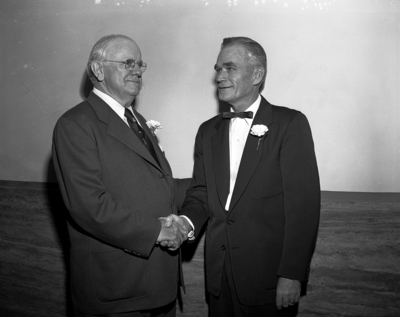 Mayor Edgar Deen shaking hands with Mayor Pro Temp. M. M. McKnight