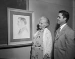 Mrs. W. T. Connor looks at pencil sketch her daughter made of Dr. Connor, which was presented to the Baptist Theological Seminary. Dr. Connor headed the Technology Department.