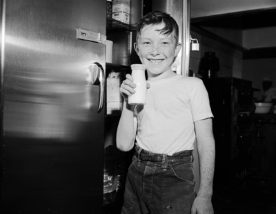 Frecklend Ben Fuller, 9, thinks milk is great training aid.