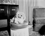 Miss Butterfly of See Vee, a 14-month-old Peke, scratches an itchy snoot with her tongue. The pup, which won first place in a Pekingese show last week in Dallas, is owned by Mrs. Georgia Sevier, 909 Judd.