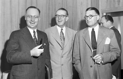 J. C. Donnell II, left, president of Ohio Oil Company, Findlay, was snapped with a pair of Texas Independents, Fred W. Shield, center, San Antonio, and R. F. Windfohr, Fort Worth, president of Texas Mid-Continent Oil & Gas Association. All are directors of the API.