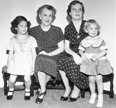 Mrs. Harrill Bridges of 3532 Park Hill Dr. welcomed four visitors to Fort Worth Sunday with open house. Left to right are Linda Bloom and her mother, Mrs. Paul Bloom, of Chicago, left, and Mrs. Roy T. Bloom and daughter, Vicki Lynn, of Lubbock.