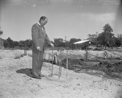 City Schools Athletic Director Herman Clark surveys foundation of high school gym under construction near Farrington Field