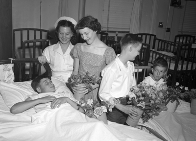 Donald Glover, 12, right, son of Mr. and Mrs. Robert Glover of Smithfield, and Carlos Campbell, left, son of Mr. and Mrs. Leslie Campbell of 430 S. Ballinger, patients Junior High School.