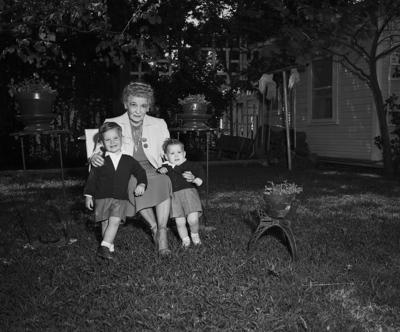 Mrs. Brown Harwood with her grandchildren, Rick and Morgan Buxton, children of Mr. and Mrs. Frederick A. Buxton.