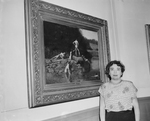 Sally Gillespie resigned as secretary of the Fort Worth Art Association, and planned to return to her home in Taos, New Mexico. Ms. Gillespie stands at the center of the image in front of a painting
