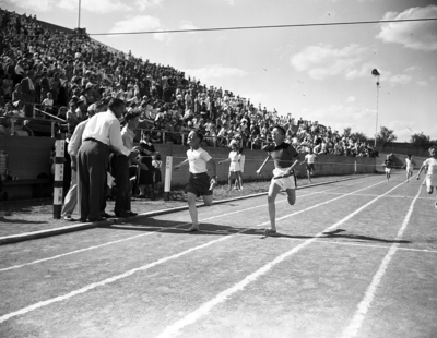 Bobby Stewart anchors D. McRae to vistory in Class D boys preliminary heat.
