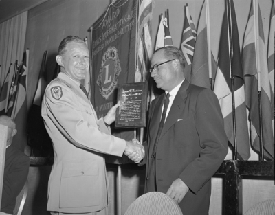 General Samuel E. Anderson, left, and George W. Armstrong Jr. at luncheon honoring General Anderson, departing commander of the 8th Air Force