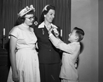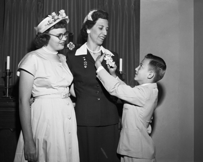 Mrs. Terrell F. Mashburn, center, was installed as president of Fort Worth City Council of Parents and Teachers at First Methodist Church Wednesday by her daughter, Miss Anita Mashburn, 15, and son, Terry Mashburn, 9.