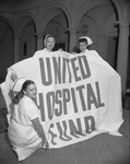 Misses Jackie Reece, Bettye Reece and Enid Clark, nurses at Cook Memorial Center for Children with flag for Freater Fort Worth Hospital Fund Campaign
