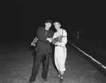 Umpire Bob Smith and Beaumont Manager Al Vincent appear to be striking friendly pose for camera, but Vincent actually is protesting Smith's decision on home run by Cat's Jim Baxes Thursday night.