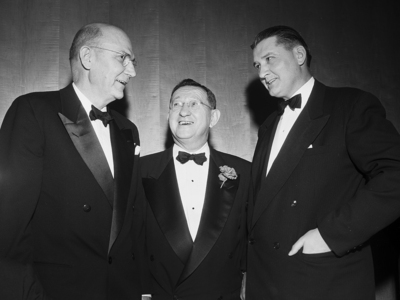 Sol Brachman, center, who was honored for good citizenship Thursday night, draws congratulations from J. B. Thomas, left, and Estil Vance.