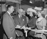 Mayor Deen cut the ribbon Saturday morning opening Duane's Shoes, Houston and 6th, while the owner and manager, Duane Sears, left, and Miss Wilda McJunkins, Texas Christian University (TCU) student and Ranch Week queen, look on.
