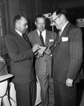 The annual convention of the Natural Gasoline Association of America, in session at Hotel Texas, draws attendance from over the nation. Left to right: Otha A. Grimes, Tulsa, a veteran in the industry; Warren H. Kraft, Honolulu Oil Corporation, San Francisco, and R. T. Couch, United Fuel Gas Company, Charleston, W. Va.