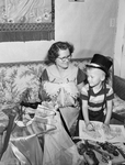 Millard Vencill, 5-year-old son of Mr. and Mr.s M. C. Vencill, 2814 Northwest 27th, and his mother look over costumes Millard would not wear now because of an appendectomy he underwent last Tuesday. Mrs. Vencill made the costumes for the boy to wear in a North Sude Recreatio Department Program at 7:30 p. m. Friday in Will Rogers Memorial Coliseum.