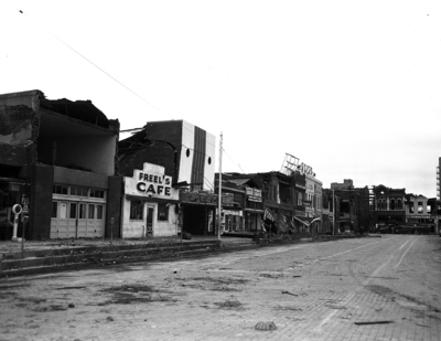 Most of these African American business establishments on the south side of the Waco City Hall will be demolished as U. S. Engineers report they are unsafe for future use. This area is on E. Franklin Avenue which was hard hit by a tornado.