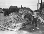 Nick Tusa, owner of Nick's Fish Market on E. Second St. in Waco, left this car seconds before the tornado struck. Power lines set fire to the car and bricks from his market crashed down on it. Tusa, who sought cover in his market, escaped from his business by pushing through debris.