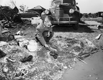 David Kirchman, 6, son of Mr. and Mrs. Elmo Kirchman of San Angelo, sadly examines one of his toy cars left devastated by the tornado that hit the city.