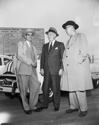 General Motors Corporation at Arlington. E. C. Klotzburger, plant manager, Harlow H. Curtice, president and R. H. Ringe, plant comptroller.