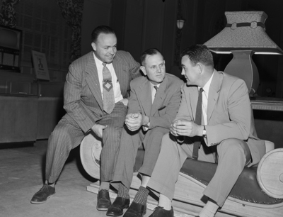 Chalmer Woodard, Southern Methodist University (SMU), Abe Martin, Texas Christian University (TCU), and Bowen Wyatt, Arkansas, left to right, are three who will be starting their first Southwest Conference football season as head coaches next fall. They are here for Southwestern College meetings this weekend.