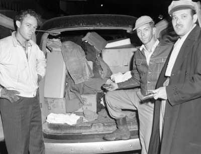 Dick Dalton, left, and Cliff Horton, right, were among the first to reach Waco with aid. They brought a panel truck full of clothes, food, and flashlights collected by the Fort Worth Jaycees to meet the emergency needs of volunteer rescue teams digging into the tornado ruins.