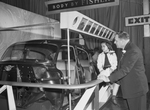 C. W. McClellanm supervisor-field representative for the Fisher Body Division of General Motors, shows cutaway body exhibit at General Motor's (GM) Motorama in Dallas to Deedra Kay Dodson, 8, of Sulphur Springs.