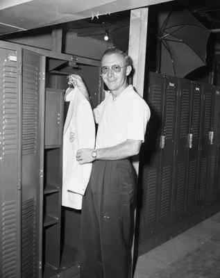 Earl Stewart Junior, shown in the locker room, is expected to offer a challenge to defending champion Ben Hogan in the Colonial invitation. Stewart won the top prize at the Ardmore Open.