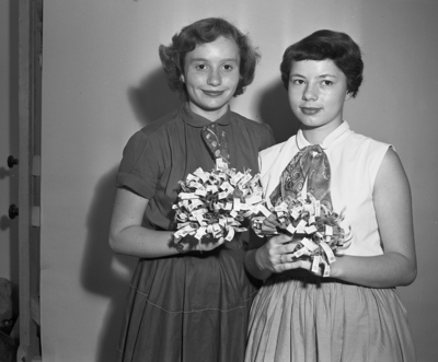 Jacci Morgan, 13, left, and Barbara Gregory, 14, will help in the memorial Day poppy sale here Saturday. American Legion auxilaries are sponsoring the annual sale for benefit of hospitalized war veterans.