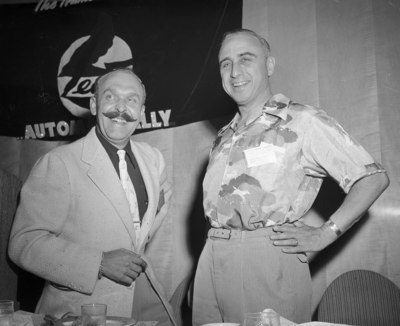 Ralph G. Platt of Cleveland, left, president of the Aviation Writers Association, and Richard N. Mock, president of Lear, Incorporated, at Grand Rapids, Michigan, were speakers Tuesday at the first Aviation Writers Association business session in Hotel Texas after a "Texas breakfast."