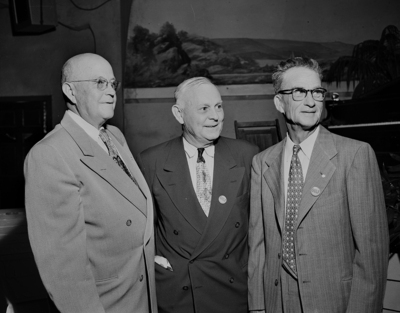Thirty-five-year emblems went to this trio, left to right: R. G. Wilson, Joseph W. Pyron and B. L. Walters. Wilson and Pyron are in the Fort Worth headquarters, while Walters, with the southern pipe line division of Gulf Refining Company, is stationed at Burkburnett.