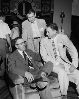 I. R. Huchingson, left, Lions 2-E district governor, Joe J. Fisher of Jasper, center, and John L. Stickley of Charlotte, N. C., directors of the Lions International, discuss the program for the district meeting which end Monday in Mineral Wells.