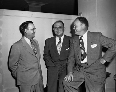 Three directors of the Natural Gasoline Association of America who were on hand for the 29th annual meeting which closed at Hotel Texas. Left to right: M. L. Mayfield, Hiwan Oil & Gas Company, Houston; F. B. Haverfield, Continental Oil Company, Ponca City, Oklahoma, and W. A. Bowser, Atlantic Refining Company, Dallas.