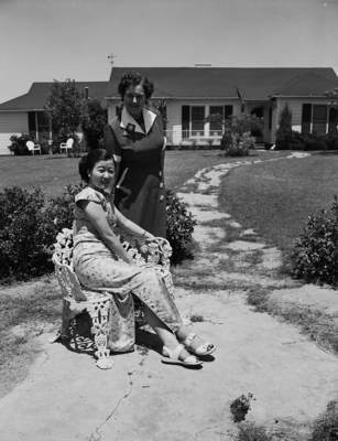 Mrs. Jude S. Perry is pictured with her house guest, Miss Bernadette Ham of Pusan Korea.