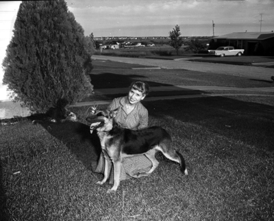 This nine month old German Shepherd, Kavalkade's Dark Donda, owned and posed by Mrs. G. W. Puckett, 1241 E. Mulkey, will be one of the entries in the Fort Worth Kennel Club's all breed puppy match Sept. 28. The dog is sired by Knoblett Cracker Jack ex Windowmere's Ardis.