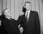 Raymond Gee, left, chairman of the Fort Worth Scottish Rite Association's scholarship endowment committee, congratulates Richard Steel for winning this year's scholarship, awarded each year to a graduating student of Masonic Home and school.