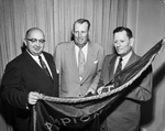 The state championship banner of the Grand Commandery of Texas was presented to the Worth Commandery drill team. Marvin Mabry, left, commander of Post 19 accepts the flag from Carlisle Garlits, right, Don Gray, center.