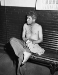 Horace Roy Richardson sat in council jail a bit confused after a night of action. Richardson, robbery suspect, was wounded by a member of the sheriff's office and recaptured some hours later in a Polytechnic house.