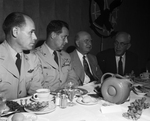Chamber of commerce dinner honoring Convair on its 30th anniversary. Left to right Colonel E. B. Gentry, Brig. General Joe W. Kelly, William Holden and J. Lee Johnson Jr. who participated in the birthday dinner program.
