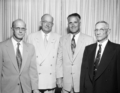Four employees in the North Texas- New Mexico division of the Stanolind Oil and Gas Company received a 30 year service award. Left to right, Arthur Drexel, Carl McCroy, Arthur Hall, and Alonzo Wright.