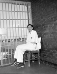 Jimmie C. Henderson, richest convict in Texas, sitting behind bars. He owns $600,000.