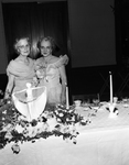 Sharing honors at a formal dinner at the Woman's Club were Mrs. Nelson Scurlock, right, retiring president of the Enterpean Club, and Mrs. L. R. Elliott, new president. A silver Lazy Susan (a turntable) was presented to Mrs. Scurlock by the Euterpean Club.