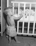 William Johnson, a little boy who was beaten with leather strap. He is shown standing near a crib.