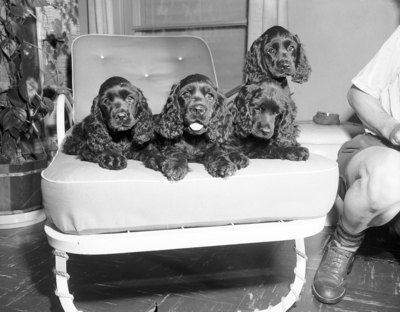 These four 10 week old cocker puppies will compete in the Lone State Cocker Club's sanction match Sunday at the Midway Lions Club. The puppies are owned by Mr. and Mrs. J. R. Schmerber. left to right, Dusty, Stormy, Sweet Pie, and Blackie.