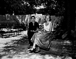 Summer Visitors -- In the patio home of Mr. and Mrs. Walton Wilfong, 100 Williamsburg Lane, are, Mrs. J. B. Malone, left, and daughter, Miss Sarah Malone, both of Austin. Clipping reads: "A cordial welcome in Fort Worth is extended to visitors--and in summer, many of the guests include former residents and their children, back home for family reunions." Published in the Fort Worth Star-Telegram, July 5, 1953.