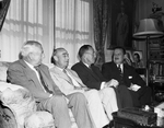 Convair Chiefs visit here. Left to Right, O. Pomeroy Robinson, Joseph T. McNarney, LaMotte T. Cohu and jay Hopkins.